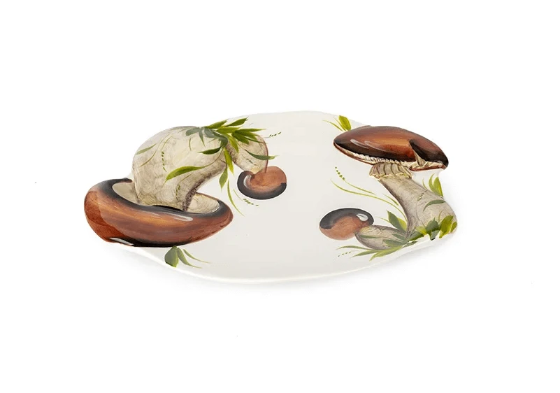 De Oldenhof ovale schaal is gemaakt van wit aardewerk en voorzien van een decoratie van paddenstoelen.